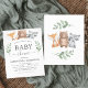 Bichos de Floresta Orçamentária - Ursos, Raios, Raposa Eucalyptus Greenery Botânica Primavera Gênero Nêutrico Bebê ou Bebê Menininha Chamadas em fundo branco - inclui uma bela e elegante tipografia guiada com folhas botânicas modernas e verde para a festa especial Mãe a Ser.