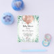Por favor, note que este convite está no papel de folheto e é muito fino. Os envelopes não estão incluídos. Para convites mais espessos (mesmo design) visite nossa loja. Para um chá de fraldas, comemorando uma menina. Um fundo branco. Decorado com balões de ouro rosa, uma menina elefante e eucalipto verde e faíscas verdes. Personalize e adicione o nome da futura mãe e os detalhes da festa. O nome e o texto: Chá de fraldas são escritos com um script de estilo manuscrito