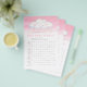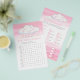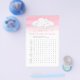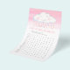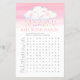Chá de fraldas de busca de palavras / jogo de aspersão de bebês e quem é minha mãe combinando o jogo de céu rosa. Seus convidados vão se divertir muito com esses dois jogos de volta para trás. Na busca por palavras, seus convidados são convidados a encontrar essas palavras comuns relacionadas a bebês usando a palavra chave, ideal para oferecer um prêmio ao convidado mais rápido que puder completá-lo. Do lado oposto está quem é minha mãe para hóspedes combinar o bebê com a mãe dele. Outros itens correspondentes de chá de fraldas de aquarela de nuvem branca estão disponíveis ou podem ser criados por solicitação. © Arte a aquarela e design gráfico pintados à mão única e bonitos pela Sarah Trett para www.mylittleeden.com exclusivamente no Zazzle.