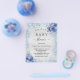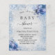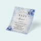 Por favor, note que este convite está no papel de folheto e é muito fino. Os envelopes não estão incluídos. Para convites mais espessos (mesmo design) visite nossa loja. Um chá de fraldas moderno, elegante, celebrando um menino. Fundo metálico de aspecto fino prateado decorado com brilho azul, farelos e flores azuis, flores. Personalize e adicione um nome e detalhes da parte. Letras pretas coloridas.