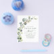 Orçamento Eucalyptus Greenery Succulent Botanical Watercolor Primavera Gênero Menino Neutro ou Bebê Rapariga Virtual Bebê Convites em fundo branco - inclui uma magnífica e elegante tipografia de escrita com folhas botânicas modernas e verde para a celebração especial da Mãe a Ser.