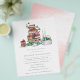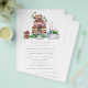 Chá de panela Elegante de Bolo de Aquarela e Flores - um belo convite à aquarela com um bolo em camadas adornado com verde e flores com velas cor-de-rosa escamosas. Convocação também, tipografia moderna.