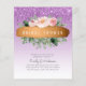 Chá de casamento, noivado, convite à festa de solteira, de casal, com flores cor-de-rosa, cor-de-rosa, rosas, folhas verdes de sábio, faíscas, brilho e placas gráficas (sem brilho ou folha de alumínio real) em tons cor-de-rosa, ouro, roxo, lilás. Este convite orçamental de baixa qualidade é também perfeito para a Trendy Quinceanera, baby ou chá de panela, 40º, 50º, 25, 18º, 16º, doce 16 anos, Baptismo (adicione um gráfico cruzado se desejar) Christening, primeira comunhão sagrada e mais, basta editar o texto em conformidade.
