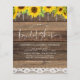 Budget Rustic Farmhouse Sunflower String Lights Lace Wedding Convites de chá de panela sobre fundo de madeira - inclui uma bela e elegante tipografia com moderna Country Fazenda House Sparkle para a celebração especial do Dia do Casamento.