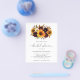 Folheto de Chá de panela de girassol com buquê rústico com girassol, rosas vermelhas, flores roxas e verde pintados com cor d'água. Um elegante design floral perfeito para um Chá de panela teórico do livro no outono/outono. Esses convites de chá de panela baratos são impressos em folhas de papel para uma opção econômica. NOTA: não incluem envelopes.