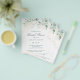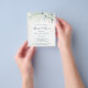 Folheto de chá de panela orçamental elegante, com folhas de eucalipto e verde, com manchas de ouro falso no topo. Abaixo estão os detalhes de seu evento em verde escuro, sobre uma lavagem a água pastel. A parte de trás é uma sombra correspondente de verde azul macio. Uma design simples e rústica que é excelente para uma celebração do tema botânico no verão. Esses convites de chá de panela baratos são impressos em folhas de papel para uma opção econômica. NOTA: não incluem envelopes.