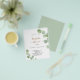 Por favor, note que este convite está no papel de folheto e é muito fino. Os envelopes não estão incluídos. Para convites mais espessos (mesmo design) visite nossa loja. Um fundo branco decorado com cinzas de eucalipto verde. Personalize e o nome da noiva a ser e os detalhes da festa. Letras pretas e ouros coloridas. Fundo verde.