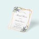 Por favor, note que este convite está no papel de folheto e é muito fino. Os envelopes não estão incluídos. Para convites mais espessos (mesmo design) visite nossa loja. Um fundo branco na moda na frente. Decorado com eucalipto e lavandas florais. Um quadro geométrico dourado. Personalize e adicione um nome e detalhes. Fundo: fundo colorido de cinza verde.