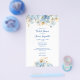 A Dourada Floral Azul Dusty é uma combinação de cores particularmente bonito e etérea. Floral garland no topo do convite cria um olhar clássico para um orçamento. Inverte para uma tonalidade azul-gelo pálida centrada no buquê floral correspondente. Azul-claro, cor-de-champanhe, cor-de-rosa, sotaque dourado.