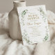 "Convide seus convidados para um Chá de panela encantador! Os nossos convites de chá de panela favoráveis ao orçamento são tão agradáveis como são baratos. Adorados com uma bela ilustração aquática do verde, eles definem o tom perfeito para uma celebração. Dentro, o texto é apresentado elegantemente em letra serif, com o nome da noiva destacado na escrita moderna, adicionando um toque de charme. Junte-se a nós para celebrar o amor e o riso!