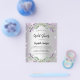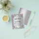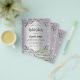 Por favor, note que este convite está no papel de folheto e é muito fino. Os envelopes não estão incluídos. Para convites mais espessos (mesmo design) visite nossa loja. Um convite para chás na moda birdal moderno. Um fundo de aparência pura prateada com brilho violeta, faíscas, flores de lavanda, flores e verde de eucalipto. Personalize e adicione o nome e os detalhes da festa.