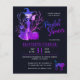 Chic elegante Halloween escuro, meia-noite azul e tipografia roxa modelo chá de panela flyer de barato com convite de festas apresentando uma bruxa com um vestido roxo e rosa e chapéu com vassoura, pá e gatos.++ Fácil de personalizar com seus detalhes. +++++++ O convite é adequado para um partido de noiva malvado do Dia das Bruxas. +++++++++ LEIA ISTO ANTES DE COMPRAR! Este é um cartão de casamento de barato orçamentário impresso em um FLYER. +++ Observe que o PAPEL ORÇAMENTAL É THIN - Você pode fazer upgrade para que este cartão seja impresso no estoque de cartão +++ ENVELOPES NÃO INCLUÍDO. +++ Verifique todas as informações e ortografia do seu texto porque você receberá exatamente o que você vê - ninguém mais verificará nada antes de imprimir. +++ Esta placa foi projetada para o tamanho de 4,5" x 5,6". Caso você escolha outro tamanho do cartão e o texto saia da página, tudo precisa ser corrigido antes de adicionar o produto ao carrinho. Peça ajuda ao Serviço de Design ao Vivo.