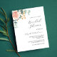 Por favor, note que este convite está no papel de folheto e é muito fino. Os envelopes não estão incluídos. Para convites mais espessos (mesmo design) visite nossa loja. Um fundo branco chic. Decorados com ouro-rosa e folhas de eucalipto cor-de-rosa-esbranquiçada, flores de rosa e cor-de-rosa-esbranquiçada, galhos, verde-verde e um cinzeiro de ouro falso. Personalize e adicione o nome da noiva a ser e os detalhes da festa. Traseira: cor de fundo rosa dourada.