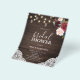 Chá de panela apresenta burgundy botânica e flores de pincel e luzes de cordas na madeira rústica.