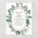 As Flores Tropicais Orçamentárias com Palm Verde Floral e Primavera Geométrico de Folha de Ouro Faux ou Convites de Champanhe de Casamento de Verão Brunch e Bubble - incluem uma bela e elegante tipografia de roteiro com flores botânicas tropicais modernas e verde para a festa especial Bride Be.