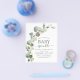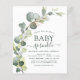 Orçamento Eucalyptus Greenery Succulent Botanical Watercolor Primavera Gênero Menino Neutro ou Bebê Rapariga Convite para Chá em fundo branco - inclui uma magnífica e elegante tipografia de escrita com folhas botânicas modernas e verde para a celebração especial da Mãe a Ser.
