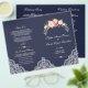 Design romântico elegante, com buquês florais de cor aquática lindíssimos, cantos de rendas, divisor floral, tudo sobre fundo azul da meia-noite (pode ser mudado); no fundo, o mesmo fundo e divisor floral com as suas iniciais. Use Personalizar este modelo para adicionar suas informações. Para obter itens correspondentes, visite minha Coleção de Buquês Florais Cor-de-Rosa Esmagada.