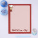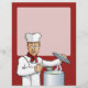 Cabeça de chef com chapéu, corcunda vermelha e texto personalizado.