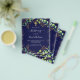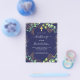 Por favor, note que este convite está no papel de folheto e é muito fino. Os envelopes não estão incluídos. Para convites mais espessos (mesmo design) visite nossa loja. Um fundo azul marinho decorado com verde de eucalipto e folhas de ouro e faíscas de brilho dourado. Uma cruz ouro. Personalize e o nome e a cerimônia da criança. Fundo: fundo azul marinho.