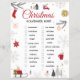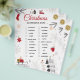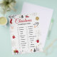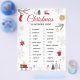 Festive Christmas scavenger hunt checklist artwork with a clean white background and charming holiday illustrations. Designed with elegant red cursive typography, surrounded by cozy winter elements like evergreen branches, snowflakes, houses, trees, a snowman, and warm holiday details. The balanced layout creates a joyful seasonal atmosphere perfect for family-friendly celebrations. All text and images are fully editable, allowing easy changes to match any style or preference.