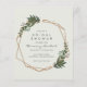 Convite de chuva de noiva boho moderno com detalhes do seu evento dentro de uma moldura geométrica dourada cercada por folhagens e flores brancas. Um design botânico perfeito para uma celebração boêmia no verão. Esses convites de casamento acessíveis são impressos em folhas de papel para uma opção econômica. Moldura cortesia de:<a href="http://www.freepik.com">Projetado por Freepik</a>POR FAVOR, NOTE: Estes não incluem envelopes.