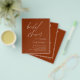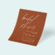 Chuva de Noiva Minimalista com Orçamento - Terracota - Coriandro Elegante e Moderno Boho Script com Foto no Verso Convites de Outono, Inverno, Primavera ou Verão - inclui tipografia de roteiro elegante e bonita para a Noiva especial para a celebração pré-nupcial.