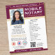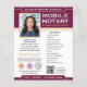 Folhetos de Notícias Profissionais com fotografia de perfil, logótipo e símbolos de acreditação. Este modelo editável pode ser personalizado com um nome, qualificações, área servida, detalhes de contato e uma lista de serviços. Adicione o logotipo e as marcas de certificação de sua empresa para marcas, conecte os clientes ao seu site com um código de QR digitalizável e agende compromissos. Uma combinação clássica de estilo tradicional e contemporâneo, criando uma aparência elegante e amigável, com texto totalmente personalizável para ajustado da marca de sua empresa. Perfeito para um notário público, agente de assinatura de empréstimo, agente de entrega de confiança notarial certificada (CNTDA), notário móvel, postilha ou outra função legal — uma maneira eficaz de anunciar sua empresa! Cores impressas: cor-de-rosa escuro, ameixa, branco e dourado. Compre a coleção on-line para obter ideias e suprimentos de produtos mais populares, projetados para notários!
