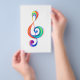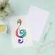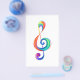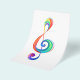 Chave musical desenhada a partir de camadas multicoloridas de cores do arco-íris sobre fundo branco.