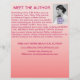Use este modelo de autor/escritor fácil para promover seu novo livro. Basta preencher os campos "Personalizar o Ti". Este modelo inclui um fundo de gradiente rosa e branco e textos cor-de-rosa, cor-de-rosa rosa e branco. "Mude" o cobrir do livro de amostras para o seu. Em seguida, adicione linhas de tag, título, aspas críticas/leitoras, um resumo de um livro/gráfico, a data de lançamento do livro e seu site à frente. No verso, adicione sua foto de autor, ao lado de uma biografia e mais informações de contato. Se quiser fazer alterações mais detalhadas, clique em "Personalizar." A partir daí, você pode alterar fontes / cores / tamanhos de texto e reorganizar todos os elementos. Este é um folheto de promocional simples e ousado para qualquer escritor - romancista, escritor não fictício, escritor de memórias, poeta - usar para marketing um novo livro.