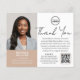 Expresse gratidão aos clientes com cartões de agradecimento personalizados! Uma maneira perfeita de mostrar sua apreciação e convidar futuras colaborações. Este design moderno exibe sua foto, juntamente com letras em estilo elegante. Um modelo de dois lados, personalizado com seu logotipo, uma mensagem pessoal, suas credenciais, uma lista de serviços, símbolos de acreditação e um código QR. Inclua uma nota amigável encorajando os clientes a acessar um site de avaliações e deixar feedback. Ideal para um Notário Público, Agente de Assinatura de Empréstimo, Agente de Entrega de Notário Certificado, CNTDA, Notário Móvel, Serviço de Apostila ou outra profissão jurídica. Cores de impressão: bege de madeira de sândalo, preto e branco. Explore a coleção online para designs impressos correspondentes!