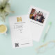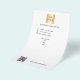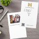 Fundo branco. Personalize e adicione o logotipo, nome, endereço, texto, seu próprio código QR. Voltar: adicione uma foto e mais texto. Conte a história sobre sua marca.