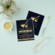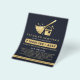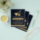 Folheto de negócios de serviços modernos, elegantes de limpeza de marinhos e ouro. Design apresenta o logotipo dourado falso de textura de folha com ícones de limpeza, seu nome ou nome comercial e número de contato, servidos na frente. Personalize ainda mais os seus contatos no verso. Perfeito para serviços de limpeza doméstica e industrial.