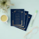 Célestial Blue Dourado QR Code Quinceañera Invices apresenta um elegante sol dourado, lua e estrelas com ouro em fundo azul. Dentro é a sua informação de convite da Quinceañera. No verso, adicione informações adicionais, como o site da Quinceañera e o código QR. Personalize editando o texto nas caixas de texto. Projetado para você pelo Evco Studio www.zazzle.com/store/evcostudio