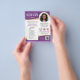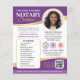 Os folhetos de marketing são uma forma excelente de anunciar seu negócio notarial e atrair novos clientes. Esta design na moda mostra seu dentro de fotos com um quadro circular, com um elegante gradiente dourado. Personalize o modelo com seu nome, credenciais, informações de contato, logotipos de acreditação, serviços e um código de QR conveniente para agendamento de compromissos. O texto pode ser personalizado para se adequar à sua empresa. Perfeito para um notário público, agente de assinatura de empréstimo, notário móvel, agente de entrega de confiança notarial certificada (CNTDA), fiscal ou outra profissão jurídica. Cores impressas: roxo, ouro, preto e branco. Compre a coleção on-line para obter ideias e suprimentos de produtos mais populares, projetados para notários!