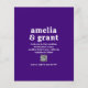 Folheto de convite para casamento de orçamento de estilo moderno, com um layout simples e mínimo com seus nomes em uma fonte retrô de ranhura. Abaixo estão os detalhes de seu evento em uma fonte sans serif junto com seu código QR (opcional) para que os convidados pesquisem e RSVP on-line facilmente. O esquema de cores brilhantes é um tom de joia roxo real. O código QR pode ser removido e as fontes/cores podem ser alteradas na ferramenta de edição de design. NOTA: Envelopes NÃO incluídos.