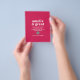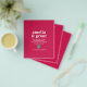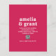 Folheto de convite para casamento de orçamento de estilo moderno, com um layout simples e mínimo com seus nomes em uma fonte retrô de ranhura. Abaixo estão os detalhes de seu evento em uma fonte sans serif junto com seu código QR (opcional) para que os convidados pesquisem e RSVP on-line facilmente. O esquema de cores brilhantes é vibrante Viva Magenta rosa. O código QR pode ser removido e as fontes/cores podem ser alteradas na ferramenta de edição de design. NOTA: Envelopes NÃO incluídos.