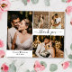 Orçamento, Elegante, Mínima Adição de Casamento 4 Colagem de Fotos personalizada com barato baixo orçamento. modelo de na moda do obrigado de casamento, com quatro (4) fotos na frente e uma foto na parte traseira. Com o texto "Obrigado" em uma fonte de script tipográfico, escrita à mão, com letras sujas, com inchaço em preto sobre fundo branco. Na parte de trás, uma foto horizontal e seu obrigado, você envia uma mensagem modelo. ***POR FAVOR, NOTE! *** O PAPEL ORÇAMENTAL/FLYER É MAIS FINO DO PAPEL. SEM ENVELOPES INCLUÍDOS.*** ATUALIZE O PAPEL PARA UM PAPEL MAIS ESPESTO. *** Cardstock Tradicional com Envelopes: https://www.zazzle.com/elegant_typography_script_wedding_4_photo_collage_thank_you_card-256676573582336140 Cartão postal: https://www.zazzle.com/wedding_love_and_thanks_photo_collage_thank_you_postcard-256792383252352079 Personalize o nome personalizado e a mensagem do obrigado. Se preferir escrever manualmente a sua nota, basta eliminar o texto de amostra para obter mais espaço. Se precisar de ajuda ou item correspondente, entre em contato com o designer!