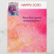 Corneta colorida, branca, rosa-rosa engraçada, tocando coruja com uma coruja expressiva e notas musicais alegres, flores, folhas em vermelho vibrante, fúcsia, violeta, roxo, azul, cores brancas, pintura aquarela de Búlgaro Lumini (c)