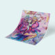 Corneta colorida, branca, rosa-rosa engraçada, tocando coruja com uma coruja expressiva e notas musicais alegres, flores, folhas em vermelho vibrante, fúcsia, violeta, roxo, azul, cores brancas, pintura aquarela de Búlgaro Lumini (c)