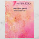 Corneta colorida, branca, rosa-rosa engraçada, tocando coruja com uma coruja expressiva e notas musicais alegres, flores, folhas em vermelho vibrante, fúcsia, violeta, roxo, azul, cores brancas, pintura aquarela de Búlgaro Lumini (c)