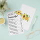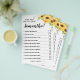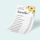 Os convidados respondem perguntas sobre a noiva, depois de preencher todas as suas respostas, a noiva responde a todas as perguntas e o convidado irá verificar as caixas certas que eles pensam corretamente e escrever o total de respostas corretas no final. A pessoa com as respostas mais corretas ganha.