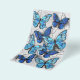 Composição vertical de borboletas de morfo realistas, azuis e brancas sobre fundo texturizado de cinzas. Borboleta azul Morpho.