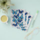 Composição vertical de borboletas de morfo realísticas, azuis e brancas sobre fundo texturizado de cinzas. Borboleta azul Morpho.