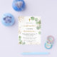 Por favor, note que este convite está no papel de folheto e é muito fino. Os envelopes não estão incluídos. Para convites mais espessos (mesmo design) visite nossa loja. Um fundo branco decorado com verde de eucalipto e pó de ouro falso. Personalize e um nome e detalhes da cerimônia. Letras pretas e ouros coloridas. Traseira: fundo branco com poeira brilhante ouro.