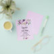 Por favor, note que este convite está no papel de folheto e é muito fino. Os envelopes não estão incluídos. Para convites mais espessos (mesmo design) visite nossa loja. Um fundo violeta, lavanda, de cor aquosa. Decorados com flores violetas e púrpuras, de cor aquosa e verde e uma cruz de ouro. Personalize e adicione seu nome e detalhes de recepção.