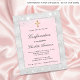 Fundo cor-de-rosa, branco prateado, fino, decorado com brilho falso prateado, brilhos. Personalize e adicione um nome e os detalhes. Letras pretas coloridas.