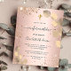 Por favor, note que este convite está no papel de folheto e é muito fino. Os envelopes não estão incluídos. Para convites mais espessos (mesmo design) visite nossa loja. Um fundo rosa de cor azul, decorado com verde de eucalipto e brilho sujo, faíscas. Personalize e um nome e detalhes da cerimônia. Letras pretas coloridas.
