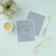 Um alternativo PAPER (não cartão) com valor de excelente SEM ENVELOPES com tamanho menor de 4,5" x 5,6" e a um preço orçamentário. (Os envelopes A6 padrão são o tamanho mais próximo ao ajustado) Festa de noivado de minimização Contemporânea de Script Manuscrito Dusty Blue Invitation com a Festa de noivado de cabeçalho principal em um script de na moda marrom escuro definido e o resto do texto que você pode personalizar facilmente. Você também pode alterar a cor e a fonte do texto editável, se desejar, por meio da opção Clique para Personalizar mais.