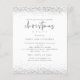 Uma ótima alternativa de PAPEL (não cartão) SEM ENVELOPES no tamanho MENOR de 4,5” x 5,6” e a um preço acessível. (Envelopes padrão A6 são o tamanho mais próximo para caber). Convite Branco para Festa de Natal com Brilho Prateado Falso. Uma borda glamurosa com brilho está em cada lado, superior e inferior, e "Natal" está em um estilo de letra minúscula manuscrita. Personalize facilmente o restante do texto com seus próprios detalhes. Você também pode alterar as cores do texto e do fundo através da opção "personalizar mais" se desejar.