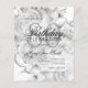 Flyer Convite Branco Floral de Prata Floral de Aniversár
